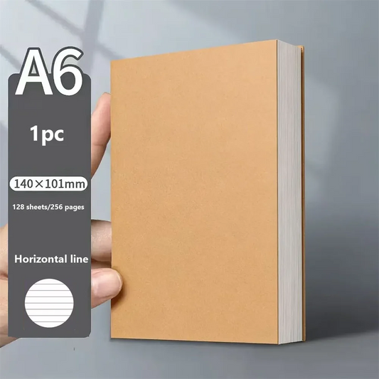 A6 Pocket Thickened Notebook 256 Pages 128 Sheets Line Blank Grid Inner Pages Kraft Paper Cover Small Notepad Book